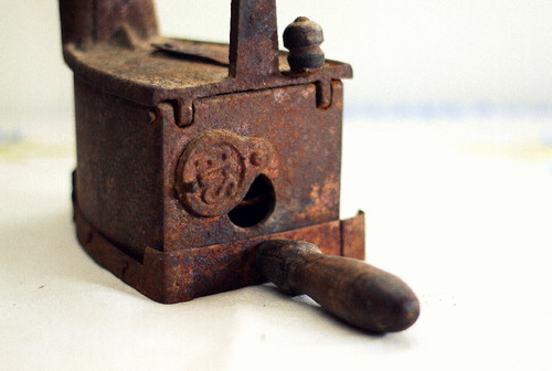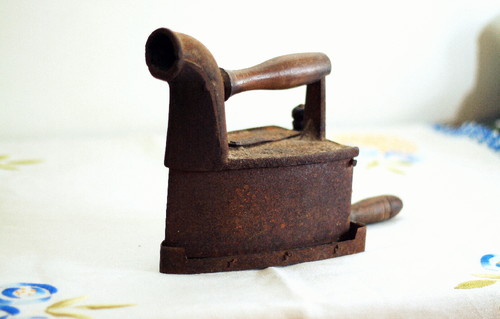 Este exemplar foi herança de família. Guardo-o com muito carinho, apesar de, na minha meninice nutrir pouca simpatia pelo bicho. Dezenas de vezes, proferia irritada que o seu inventor deveria levar com ele na cabeça. É que, obrigatoriamente, segurava nas pontas dos lençóis de linho para que, passo a passo, a minha mãe esmeradamente os engomassem. Eram minutos intermináveis.