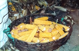 À roda de uma enorme pilha de espigas, em espaçosas eiras, homens, mulheres e crianças, cantando e contando histórias de pasmar, lá iam despindo as maçarocas dos embaraçosos folhelhos. Atiradas para grandes gigos, eram de seguida, alombadas por robustos homens e mulheres, até à última morada – os canastros (espigueiros).