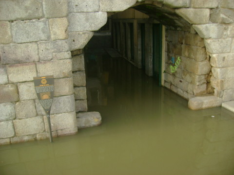 Após uma noite sempre a esgalhar e nos dias anteriores também foi um ver se avias a cair do céu, o Douro começou a engrossar. Hoje na parte de tarde já o Postigo do Carvão, no Cais da Estiva, estava inundado. É a única porta das muralhas Fernandinas que escapou ao odioso camartelo, passe a figura de estilo.